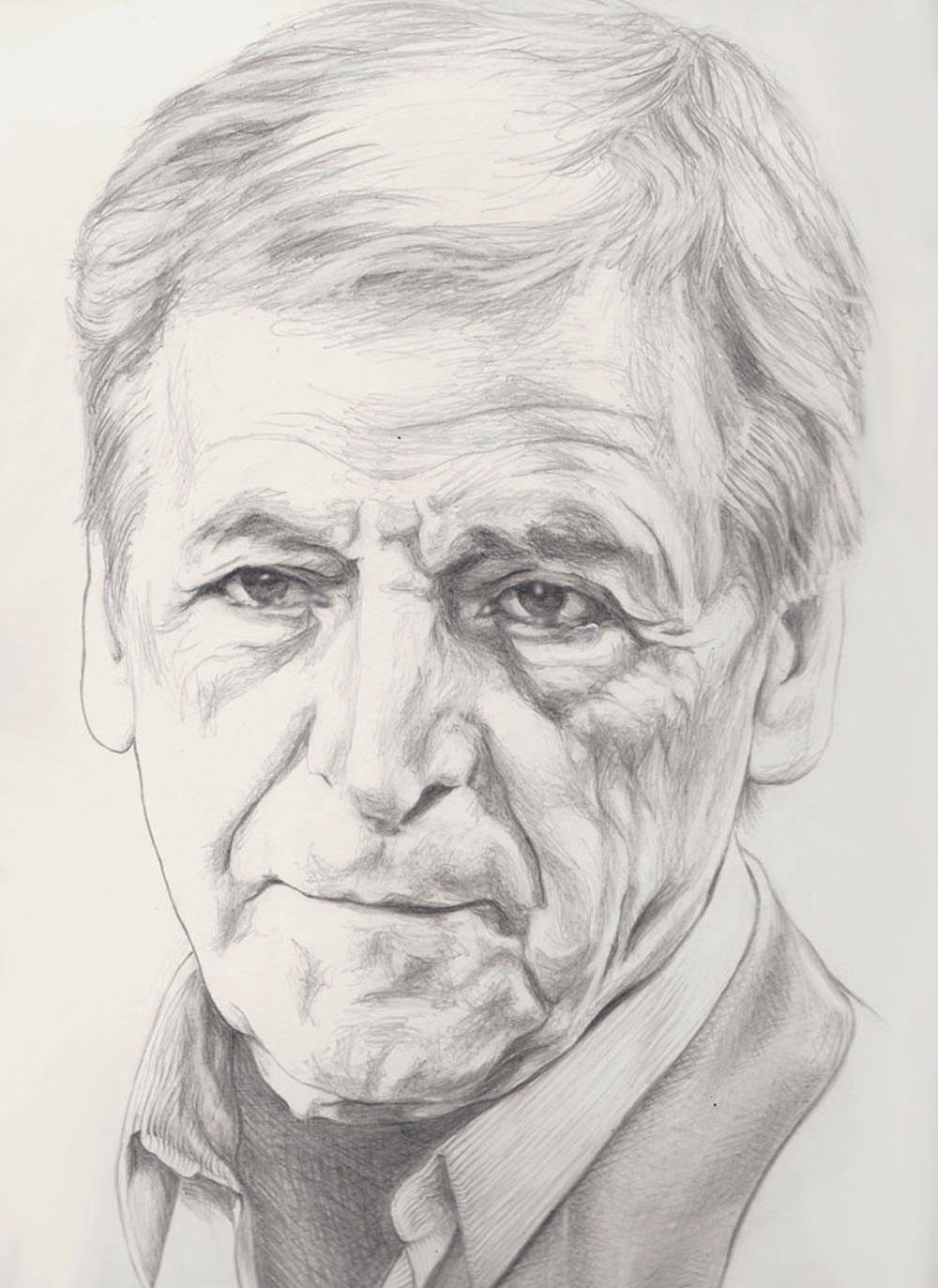 Το πορτραίτο του Κώστα Γαβρά σχεδιασμένο από την κα. Τιτίνα Χαλματζή, έτσι όπως δημοσιεύθηκε στην εφ. Καθημερινή.