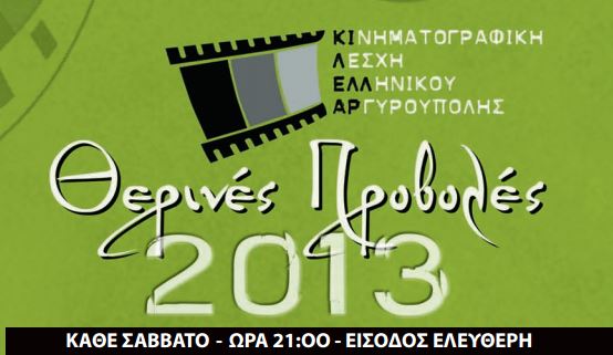 Οι Θερινές Προβολές της Κινηματογραφικής Λέσχης, θα πραγματοποιούνται κάθε Σάββατο έως τις 8 Σεπτεμβρίου, στις 21:00. Χώρος προβολών, το Πάρκο 129 Π.Υ., Δραγατσανίου & Πραξιτέλους, στην Αργυρούπολη και με ελεύθερη είσοδο. Για περισσότερες πληροφορίες και το αναλυτικό πρόγραμμα των προβολών παραθέτουμε το επίσημο site του δήμου Ελληνικού – Αργυρούπολης.