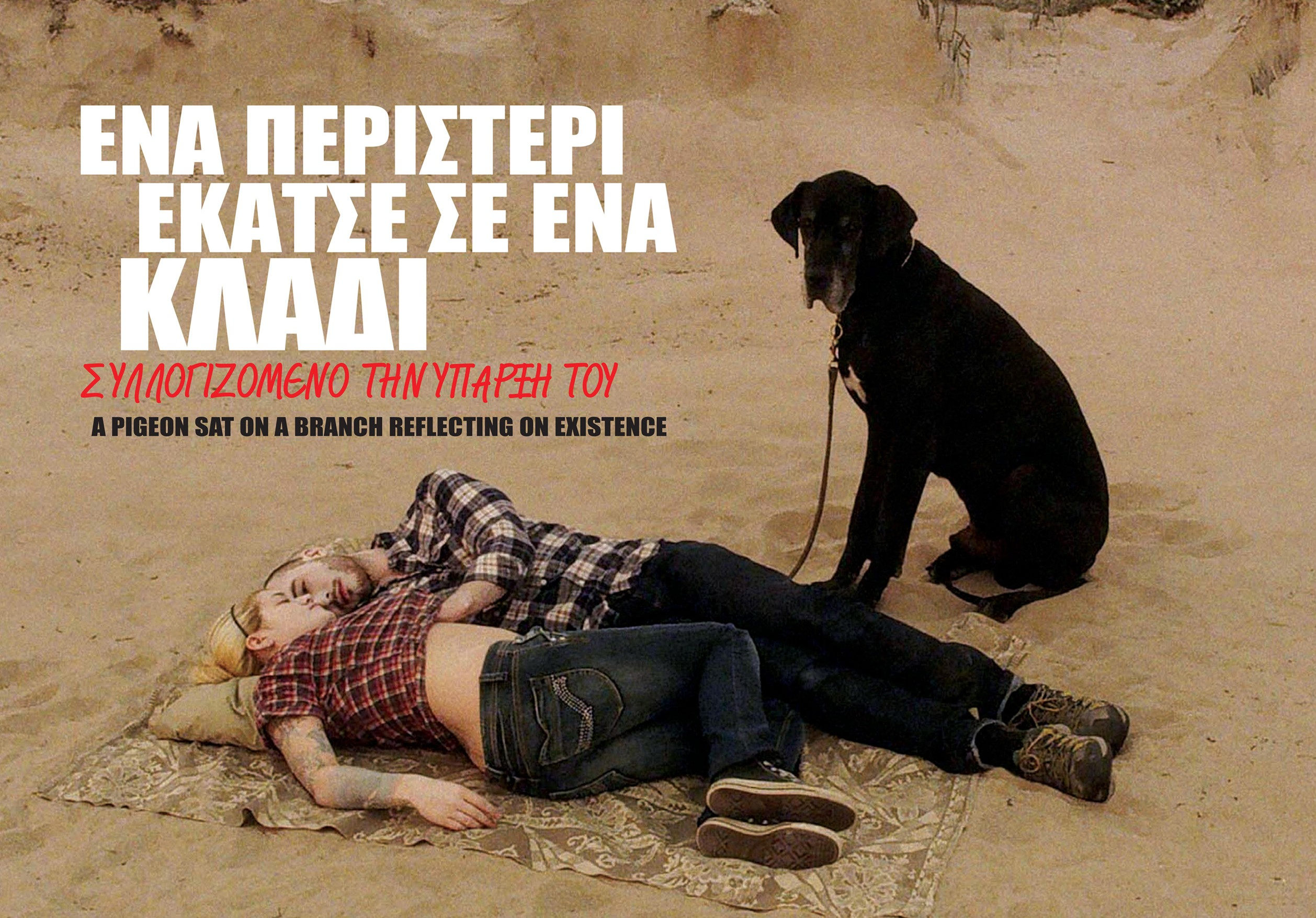 Περιπλανώμενοι στο ιδιόμορφο σύμπαν της ταινίας «Ένα Περιστέρι Έκατσε Σε Ένα Κλαδί Συλλογιζόμενο την Ύπαρξή του» (A Pigeon Sat on a Branch Reflecting on Existence) γινόμαστε κοινωνοί των μοναδικών χαρακτήρων που με μαεστρία και γλαφυρότητα μας συστήνει ο σπουδαίος Σουηδός δημιουργός. Δοκιμάζουμε έτσι την ομορφιά αλλά και τον παραλογισμό της ύπαρξής μας στο εδώ και τώρα, που περιβάλλεται τόσο από τους άλλους όσο και από τους εαυτούς μας.