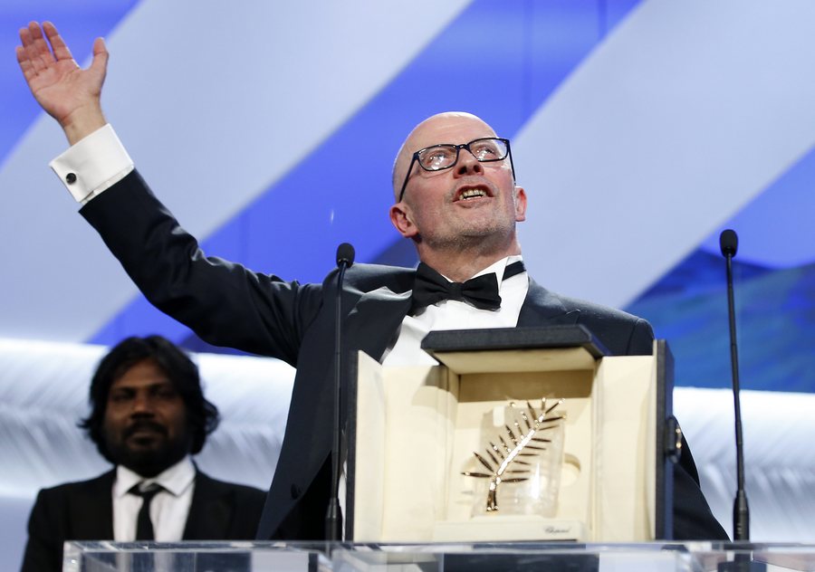 epa04766115 French director Jacques Audiard receives the Palme d’Or (Golden Palm) award for his movie ‘Dheepan’ during the Closing Award Ceremony of the 68th Cannes Film Festival, in Cannes, France, 24 May 2015. Presented out of competition, the movie ‘La Glace et le Ciel’ (Ice and the Sky) closes the festival. EPA/SEBASTIEN NOGIER