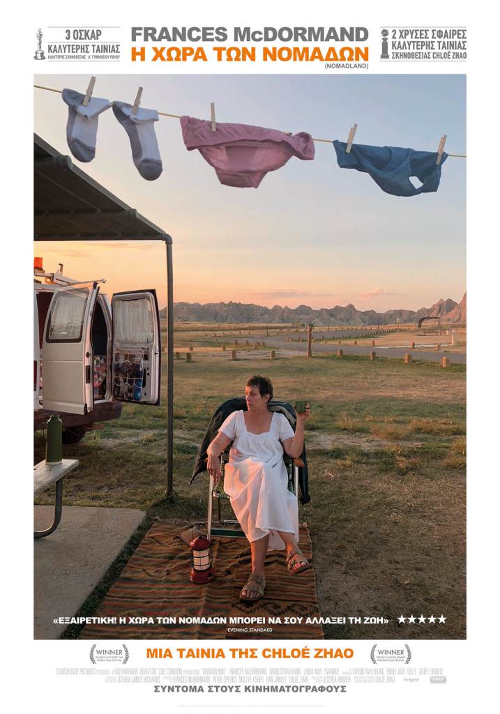 Η Οδύσσειά της στους αυτοκινητοδρόμους, τις ερήμους και τον απέραντο ορίζοντα μιας Αμερικής που μοιάζει με σύγχρονη Άγρια Δύση, εμπνέει την Κλόι Ζάο για ένα ήρεμο έπος, ένα μινιμαλιστικό road movie το οποίο η Φράνσις ΜακΝτόρμαντ επικοινωνεί μοναδικά μέσα από το πρόσωπο, τα βλέμματά της, την εκφραστική γλώσσα του σώματός της, παραδίδοντας άλλη μια σπουδαία ερμηνεία σε μια από τις καλύτερες ταινίες της χρονιάς.