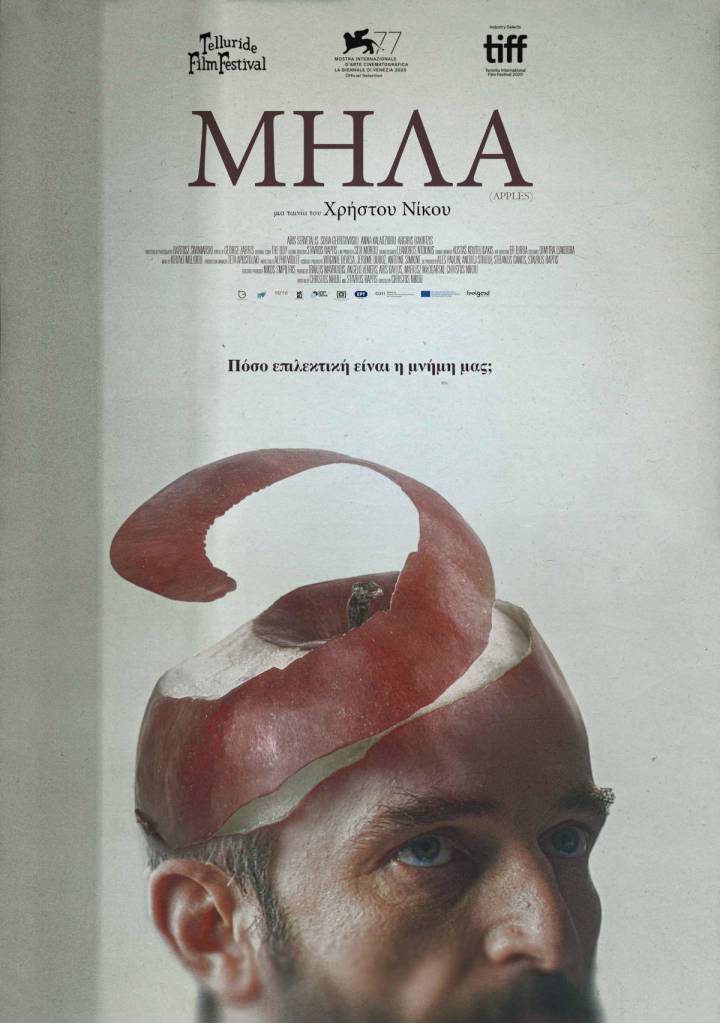 Οκτώ χρόνια μετά το «KM», την βραβευμένη μικρού μήκους ταινία, που συμμετείχε σε περισσότερα από σαράντα Διεθνή Φεστιβάλ, μεταξύ των οποίων τα Ρότερνταμ, Παλμ Σπριγνκς και Σίδνει, ο Χρήστος Νίκου επιστρέφει με τα «Μήλα» για να αφηγηθεί μια γοητευτικά αλλόκοτη, πρωτότυπη ιστορία με ήρωα έναν άνδρα που πάσχει από απώλεια μνήμης σε μια πόλη, όπου ξαφνικά ένα μεγάλο ποσοστό ανθρώπων έχει αρχίσει να ξεχνά. Ισορροπώντας ανάμεσα στην σάτιρα και στη ρομαντική διάθεση ενός δυστοπικού παραμυθιού, το φιλμ εξερευνά την έννοια της ταυτότητας και της πραγματικότητας.