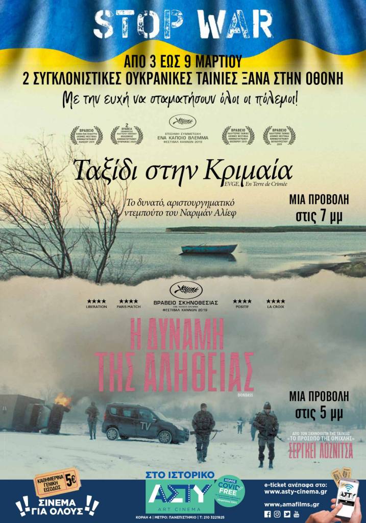 Δύο χαρακτηριστικές ταινίες του Νέου Ουκρανικού Κινηματογράφου, επιστρέφουν στις Αίθουσες από την Πέμπτη 3 Μαρτίου, με αφορμή τα τραγικά γεγονότα που ακολουθήσαν τη ρωσική εισβολή. Πρόκειται για το «Ταξίδι στην Κριμαία» του Ναριμάν Αλίεβ και «Η Δύναμη της Αλήθειας» του Σεργκέι Λόζνιτσα, που συμμετείχαν και οι δύο, στο Τμήμα «Ένα Κάποιο Βλέμμα» του Διεθνούς Κινηματογραφικού Φεστιβάλ των Καννών. Διαβάστε επίσης: Τρεις ταινίες για την Ουκρανία στο 24ο Φεστιβάλ Ντοκιμαντέρ Θεσσαλονίκης.