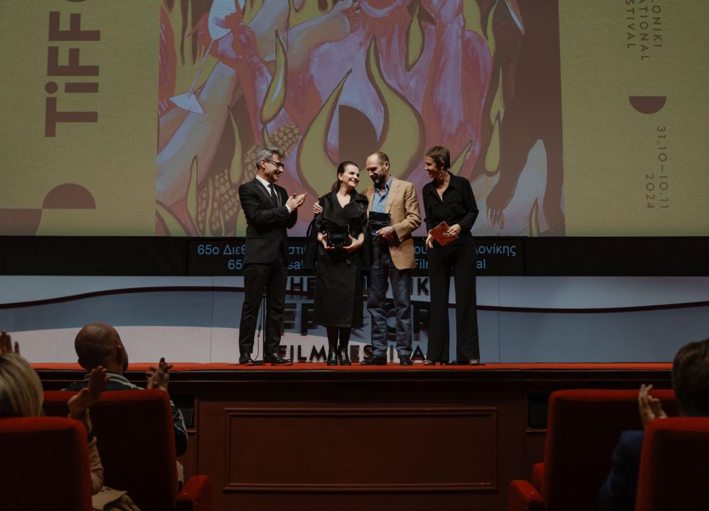 The floor was then taken by Juliette Binoche, who first thanked the Thessaloniki Film Festival, Elise Jalladeau and Orestis Andreadakis. “Your skies and seas are an inspiration. In my life, and in our lives, your words and thoughts, Sophocles, Homer, your great philosophers and your saints – especially the Saint Paisios – are feeding my path and heart. Thank you for what you give to the world. I had the most amazing day today in Thessaloniki. Visiting your monasteries, walking in your streets. Feeling your stones and trees, eating your bread, fish and vegetables, and admiring your Byzantine treasures. What a beautiful journey,” Juliette Binoche initially noted.