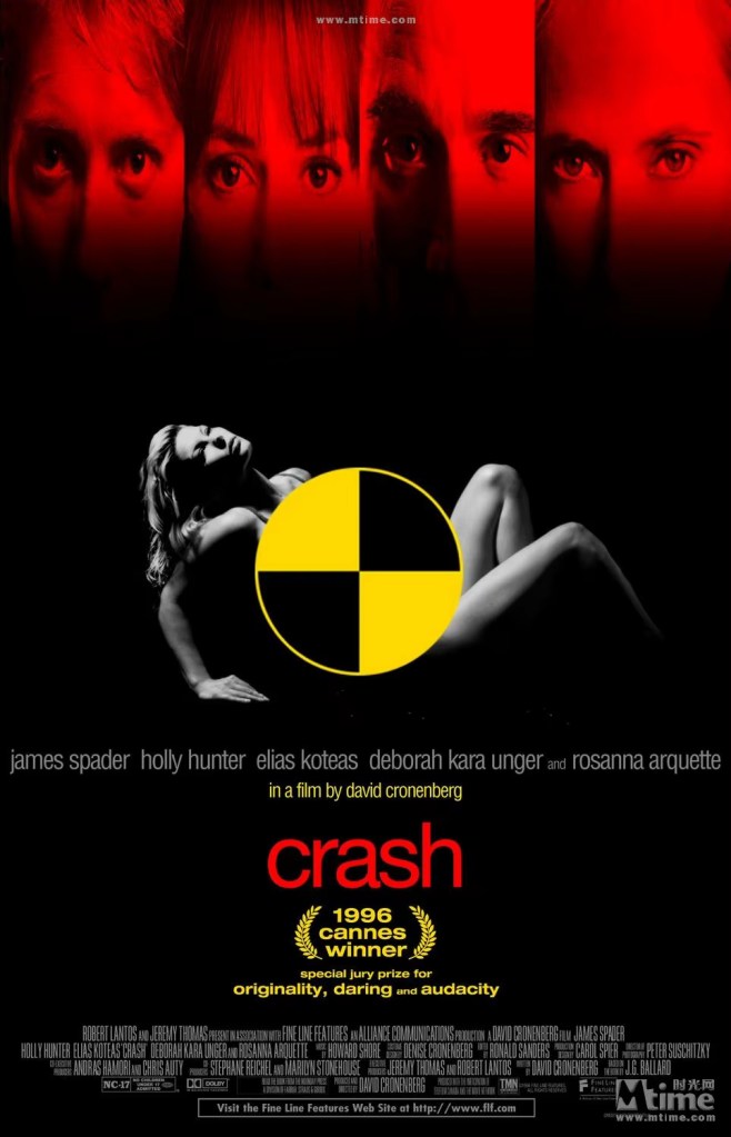 Το «Crash» μπορεί να γίνει αντιληπτό και ως μια σκοτεινή ωδή στο ίδιο το Σινεμά, μέσα από το συγκλονιστικό εύρημα της κάστας των συμφοροφιλιακών (των ανθρώπων, δηλαδή, που ηδονίζονται μέσα από την πρόκληση καταστροφών και ατυχημάτων), που πασχίζουν να αναπλάσουν τα αυτοκινητιστικά δυστυχήματα των Τζέιμς Ντιν και Τζέιν Μάνσφιλντ.